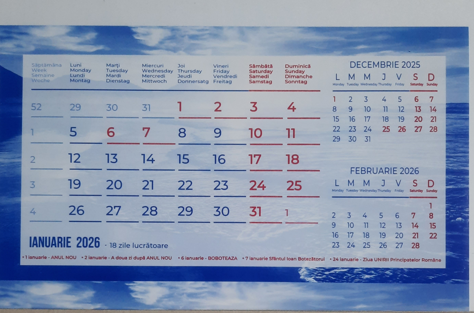 Calendar de birou triptic